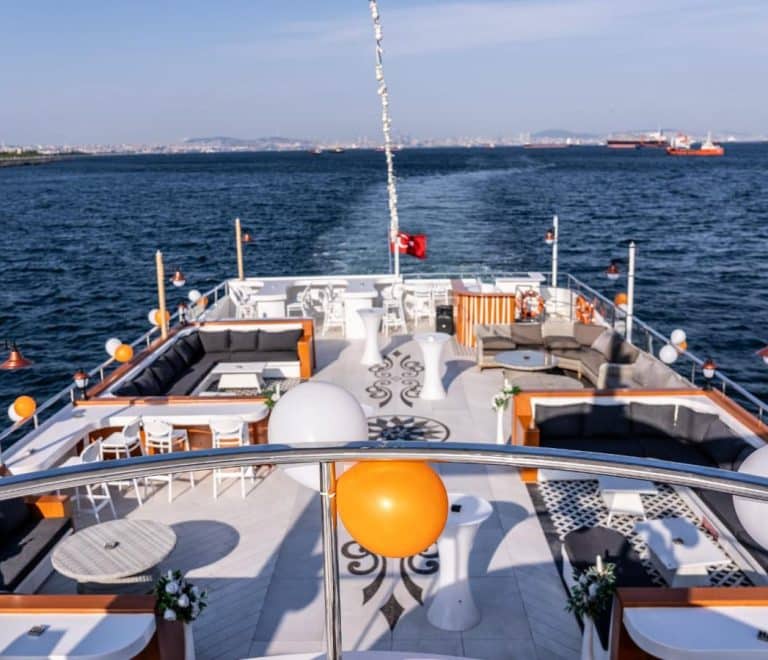 Kapasite: 450 oturma / 540 kokteyl Uzunluk: 42 m • Genişlik: 11 m Açık/Kapalı Alan: Üst açık güverte + kapalı salon + 2 Adet Dinlence Terası Olanaklar: Merkezi klima, Gelin Damat Odası, Endüstriyel Mutfak, Gelişmiş Radar Sistemleri Ses & Işık: Profesyonel sistem (DJ/bant uyumlu) WC: 4 • Engel Dostu: Var Tekne üzerinde düzenlenen düğünler, […]